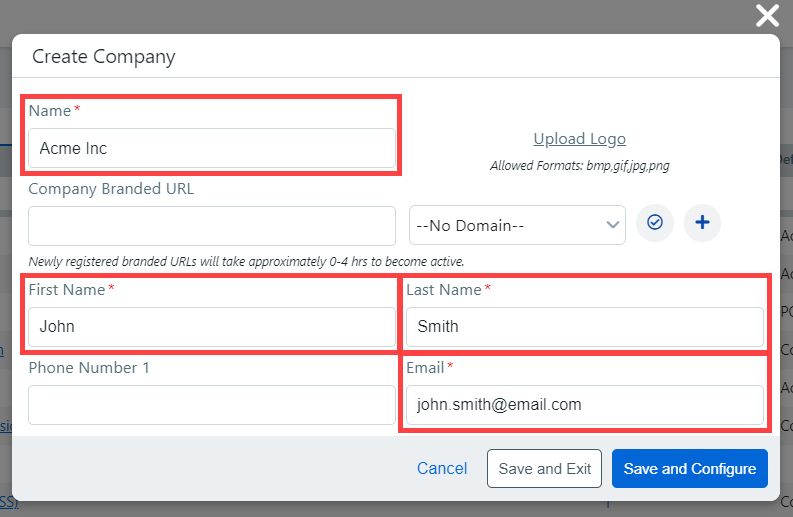 Company Branded URL: Enter a name for your URL in the Company Branded URL field. Then choose a domain from the No Domain drop-down list.