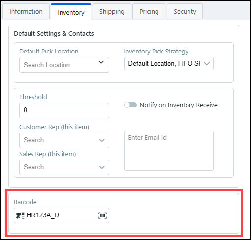 ● Location Barcode Details