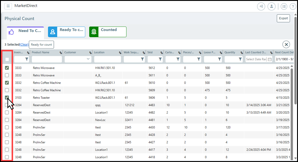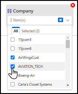 ● Click Select in the Customer field and choose the customer(s) whose inventory usage you want to audit.