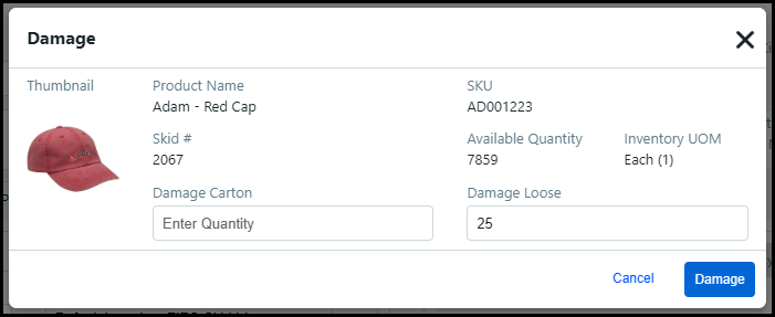6 Enter the Damage Quantity and / or Good Quantity into the table to determine the number of damaged items to dispose and the number of good items to return to inventory.