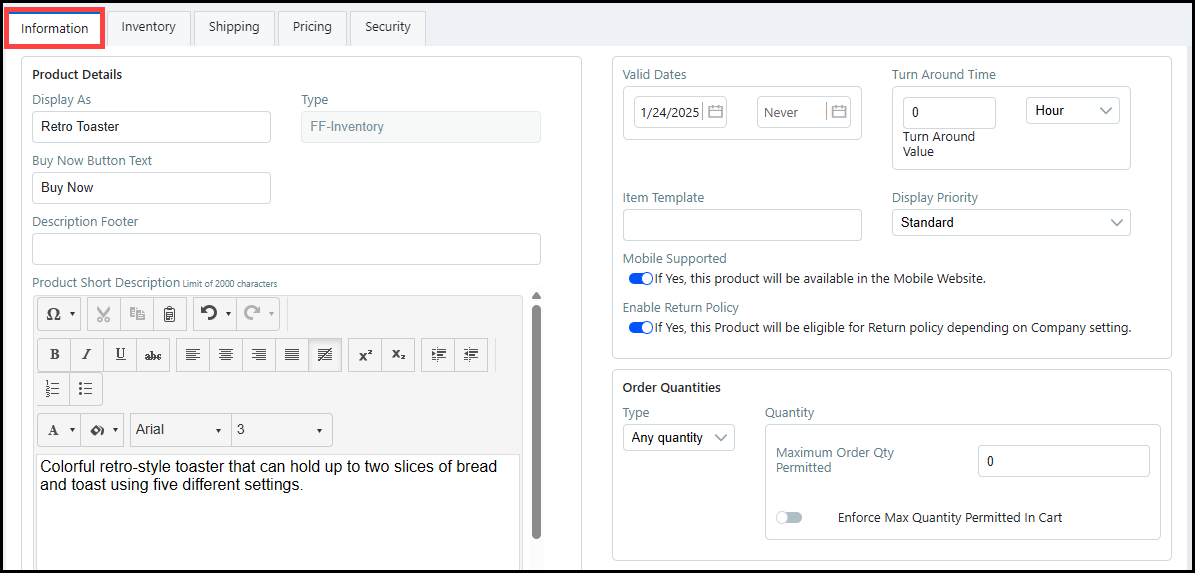 ● Scroll down to the E-COMMERCE OPTIONS section and verify that the MDFF Rental option is selected.