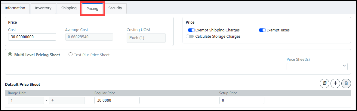 8 Enter the appropriate Range Unit(s) and Price into the Price Sheet.
