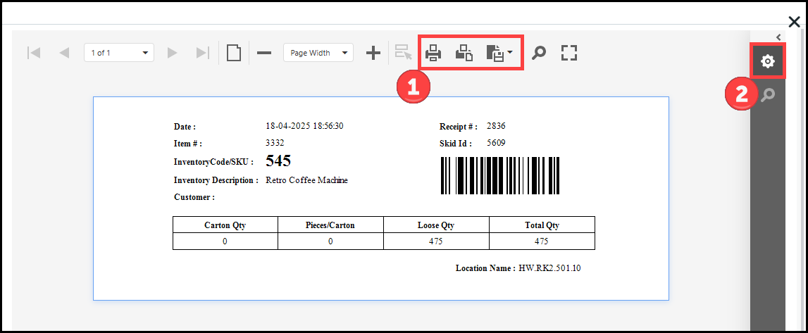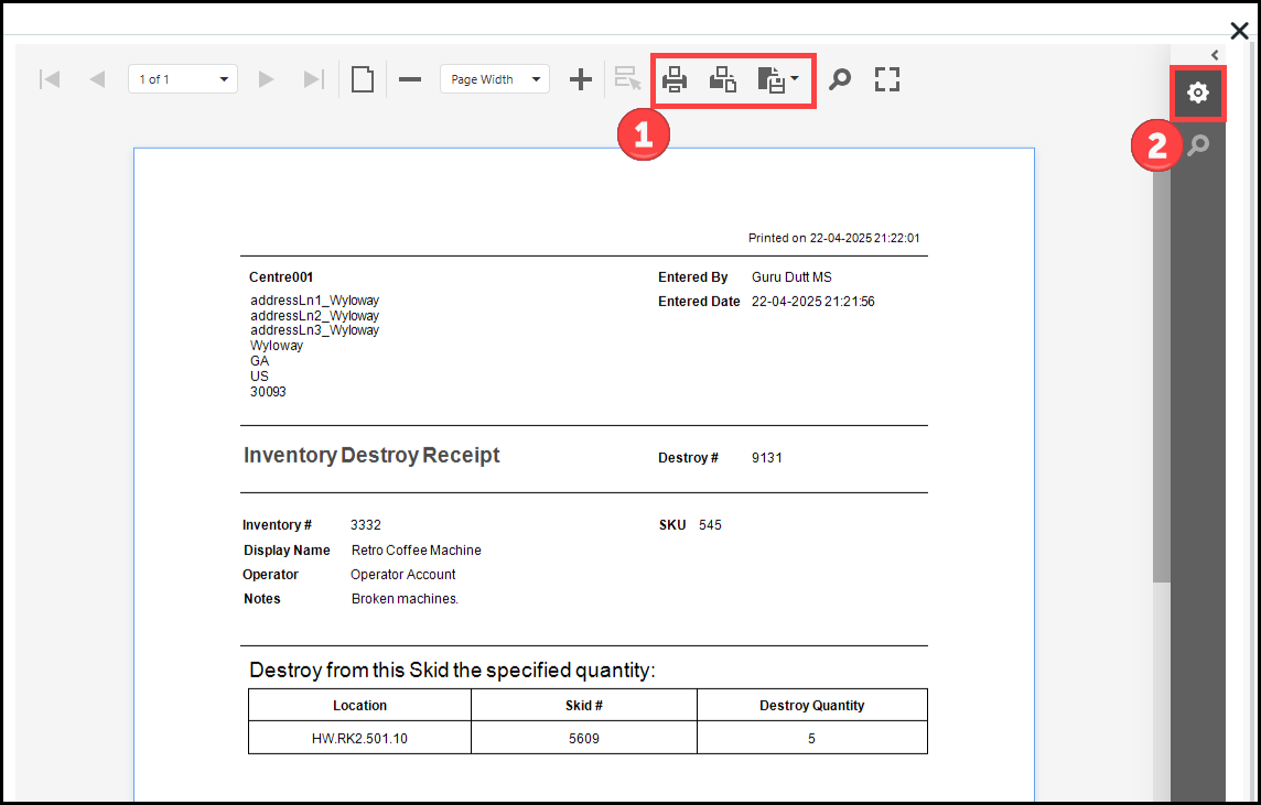 ● Inventory Destroy Receipt