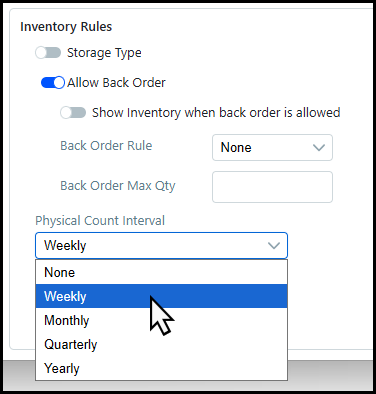 ● Unit: Select the unit of measurement for the warehouse: Inches, Feet, and Centimeters.