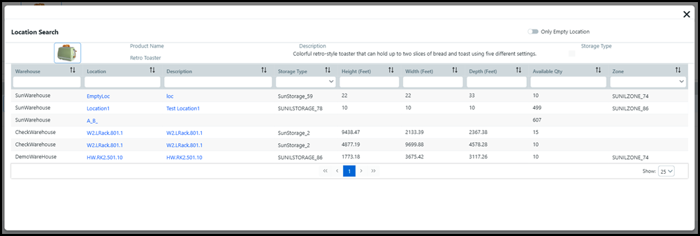 ● Height (Inches): Specify the height of each location in the specified unit of measurement for the warehouse.