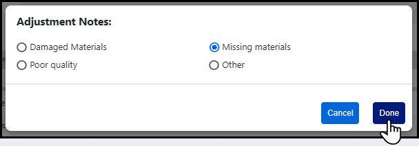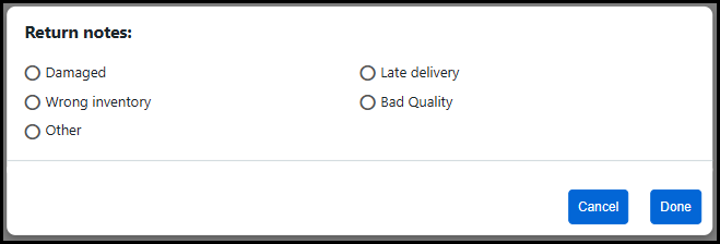 7 Select a reason for the return from the Return notes window.
