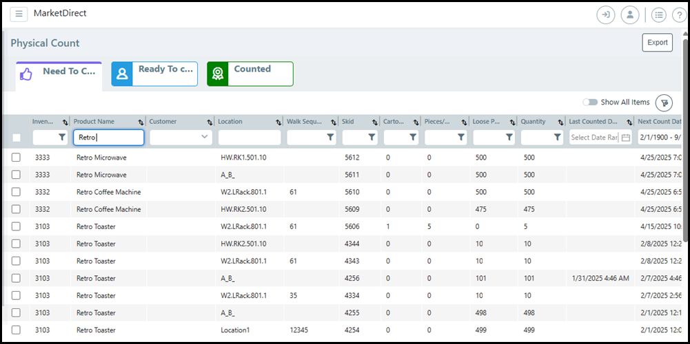 ● Customer Inventory