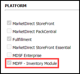 ● Scroll down to the PLATFORM section and verify that the MDFF-Inventory Module option is selected.