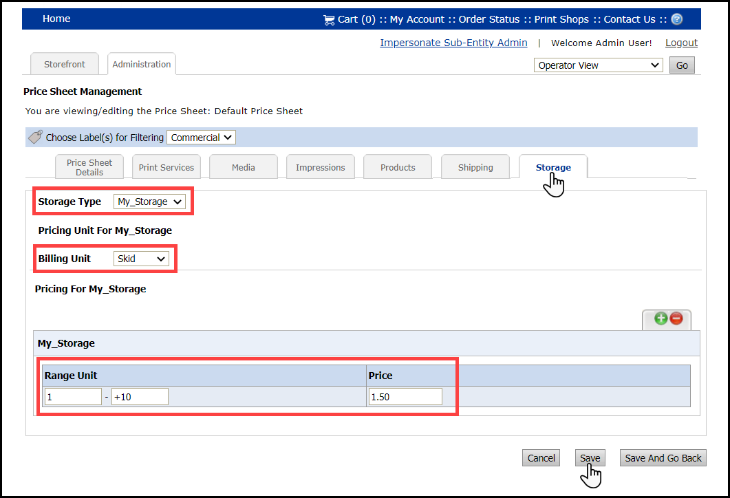 ● For example, if a company has 10 skids in Central Storage and the administrator prices Central Storage at $1.50 per skid, the price is ($1.50 x 10) $15.00.