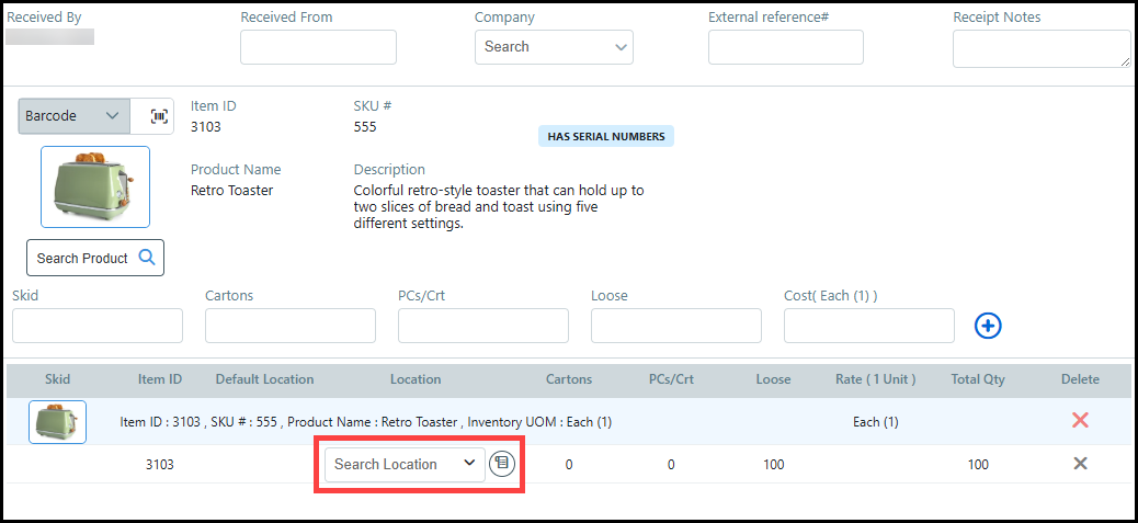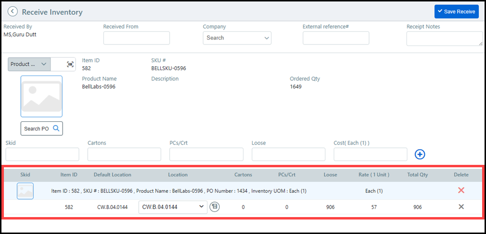 ● Inventory Receipt