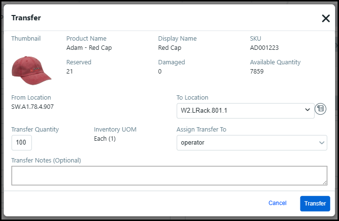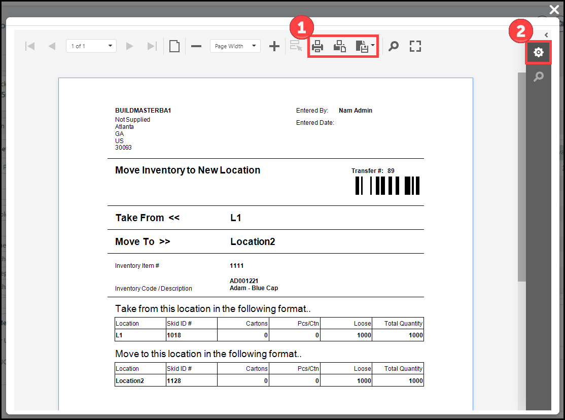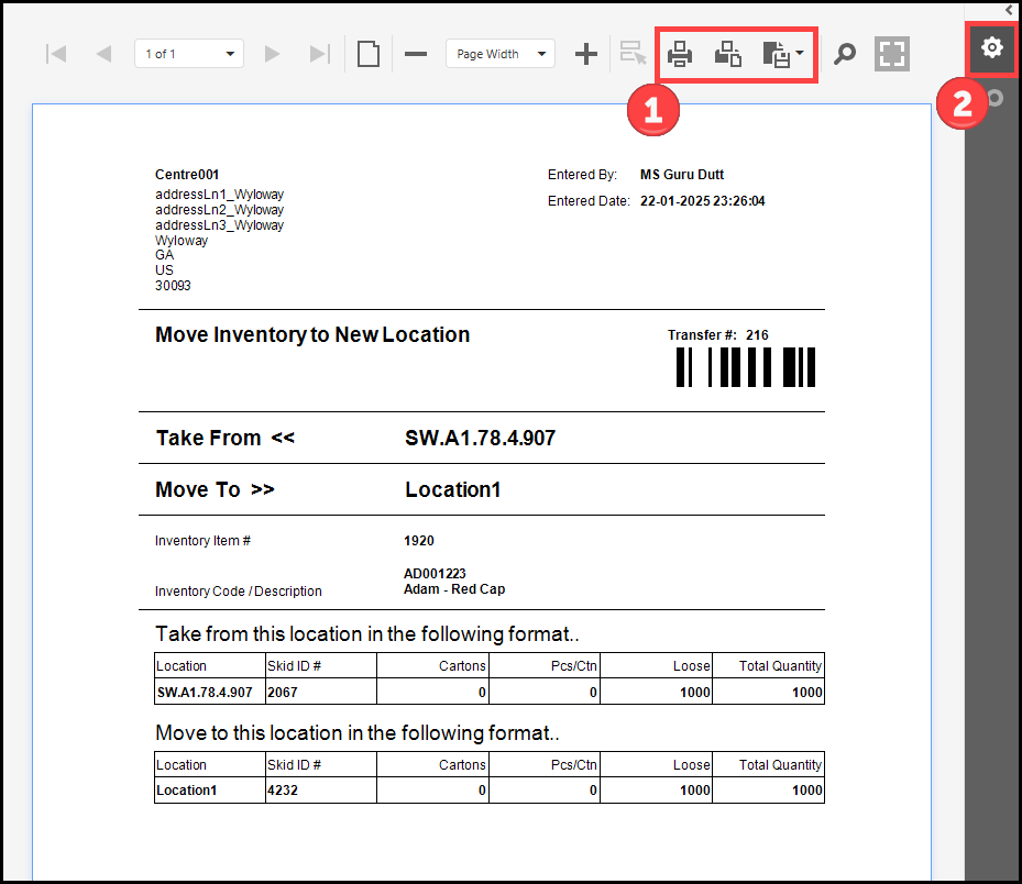 ● Inventory Transfer Receipt