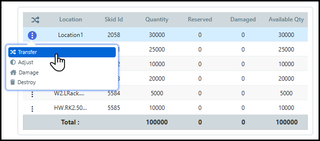 5 Select to either return the item(s) to the original Skid or a new Skid.