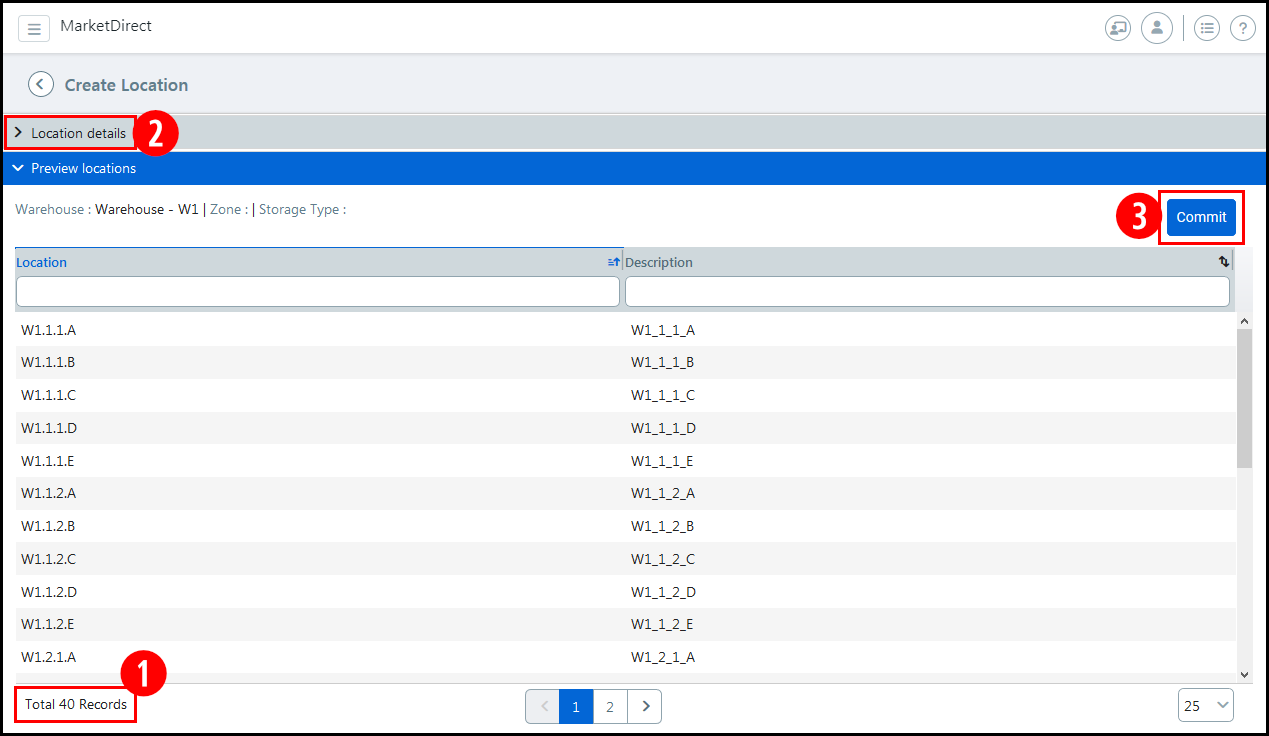 ● So there are 40 basic locations in the warehouse that you need to create in MDFF.