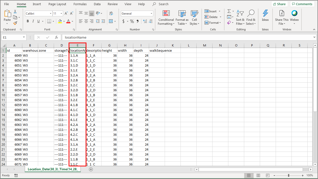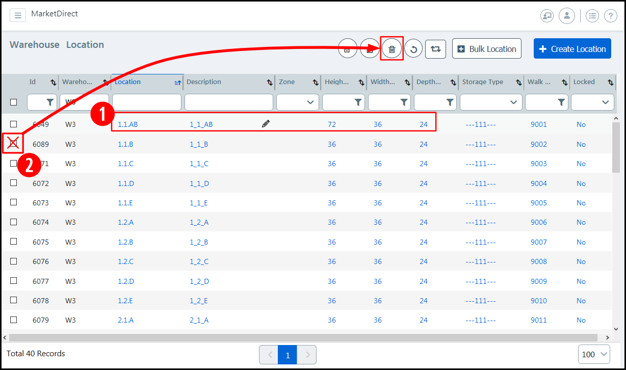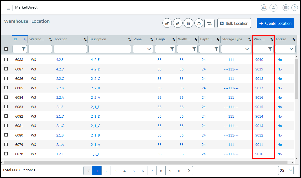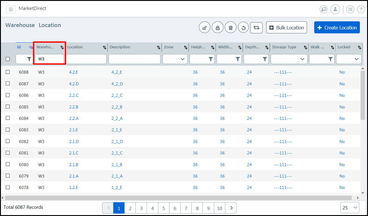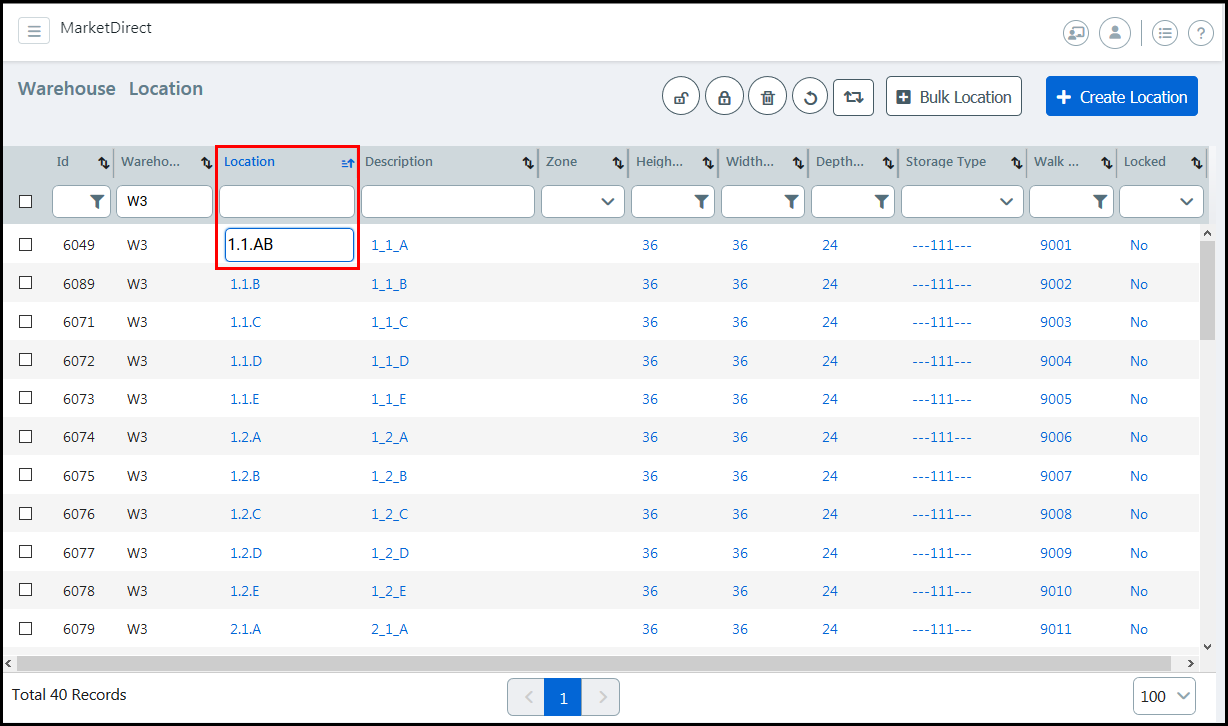 ● Width (Inches): Specify the width of each location in the specified unit of measurement for the warehouse.