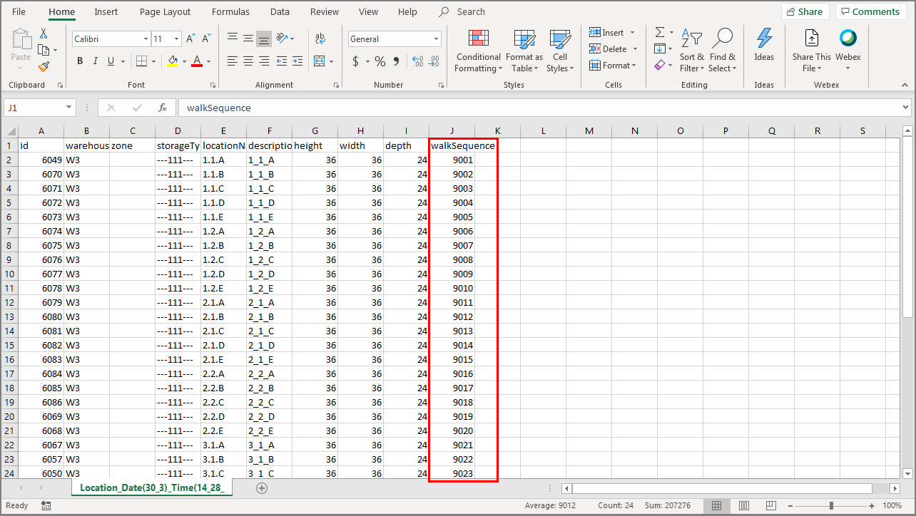 order is Warehouse Prefix, Row, Rack, Level.