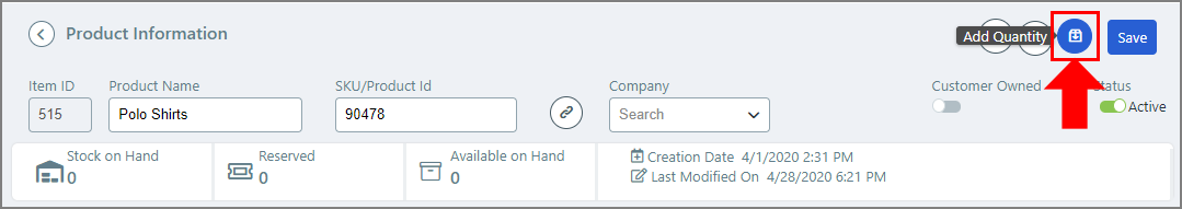 4 Click Save to add the warehouse to the system.