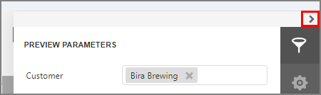 ● The Customer Inventory report has a required Customer parameter. These parameters may change depending on the report. In the PREVIEW PARAMETERS fly-out window: