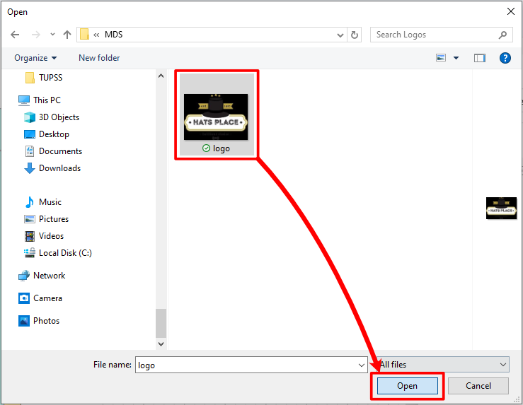 ● Select the new logo and click Open.