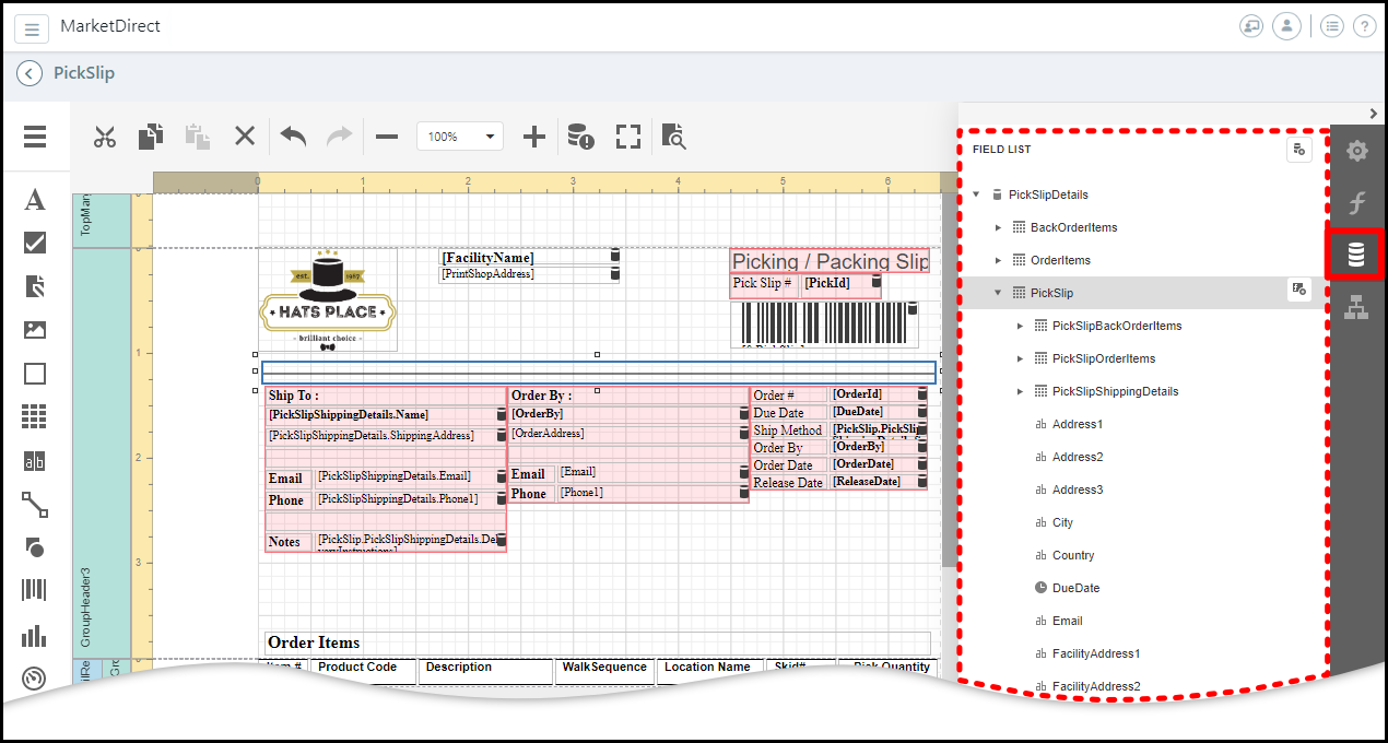 This section presents the steps to perform a simple customization of a report (in this case the PickSlip standard report).