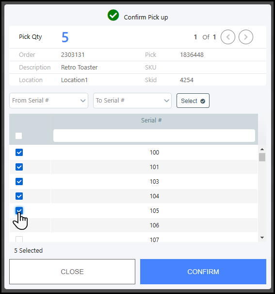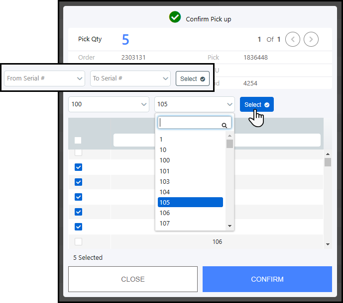 2 Enter the serial number into the Serial # search bar and click the appropriate check-box.