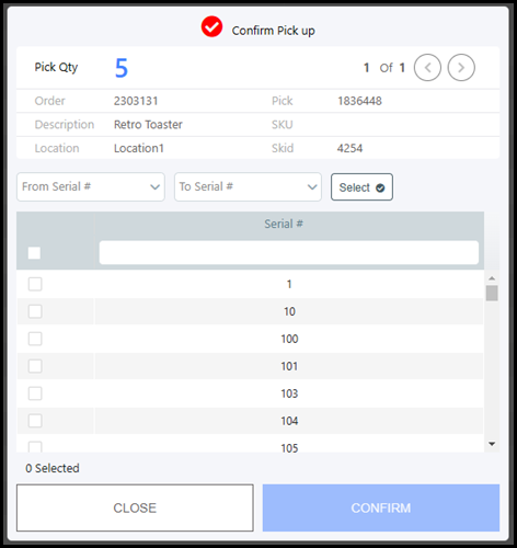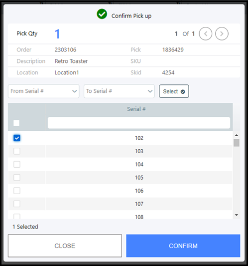 Serial numbers must be tracked during any interaction with serialized products. There are three common ways to select a serial number from the Serial Number table.