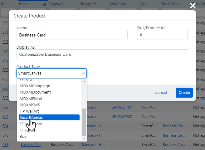 ● Sync Selected: Synchronizes the selected products associated with the SmartCanvas template.