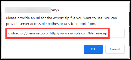 3 Copy the URL from the Please download the exported zip file pop-up window.