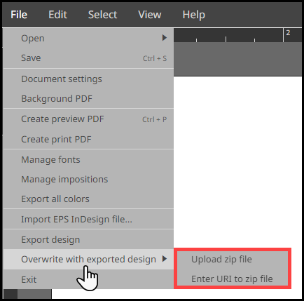 3 Choose Upload zip file to upload an exported SmartCanvas template zip file.