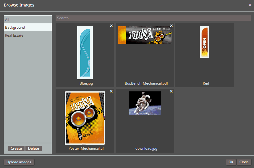 Buyers can use the product design tools to personalize products by selecting images from galleries and adding their own text, images, QR codes, and shapes.