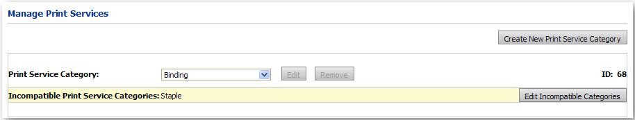 Print Service Categories field on the Manage Print Services