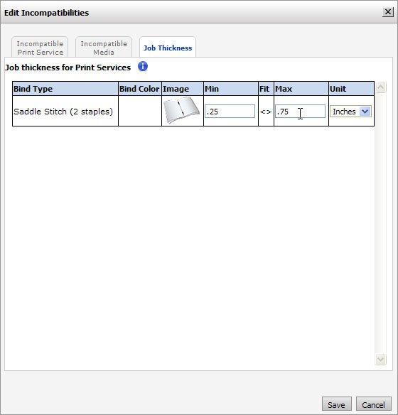 print service incompatible with job thicknesses that exceed the machine