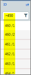 ● For example, >450 will show all Product ID values greater than 450.
