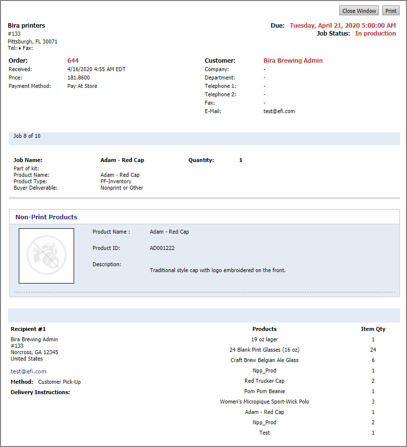 6 Click Print to print the job ticket or Close Window to return to the Operator View.