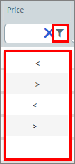 Price of the item (not total order price but the price of the line item). To filter on this attribute: ● In the column header field, enter a number to filter jobs that match the entered value exactly, or use any of the operators to broaden the results. ● Click |