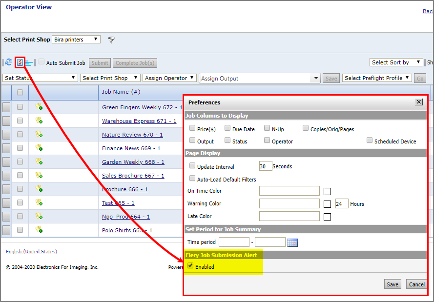 The Operator View is a central command station for operators and other job managers. The page provides job operators and administrators with a single access point for every job in the system. Designed to enhance productivity and streamline job management operations, the Operator View lets operators create personalized views to suit every workflow. Sophisticated search, sort, and filtering capabilities help operators zero in on just the jobs they need to process and perform bulk job management tasks in a single operation.