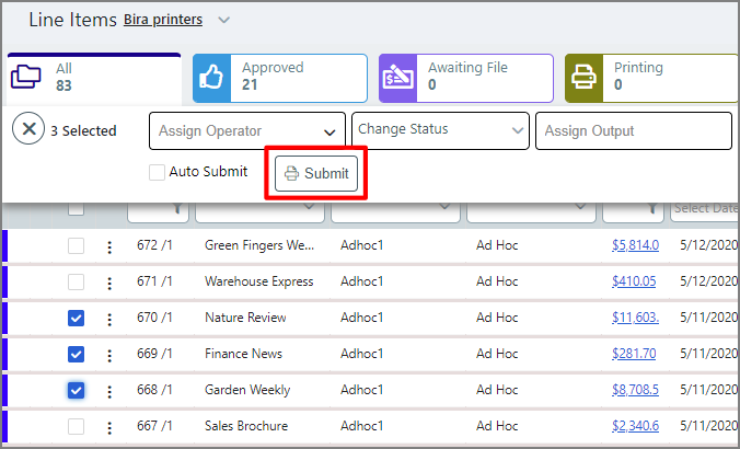 ● Click Submit from the job management task bar.