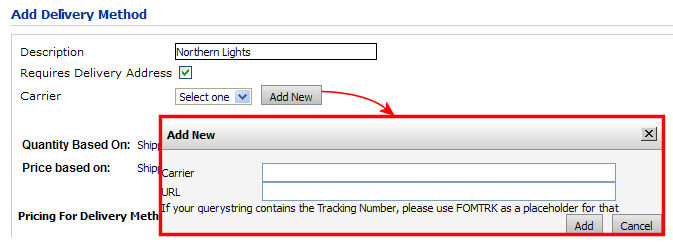 on the Delivery Methods page by either selecting a Carrier