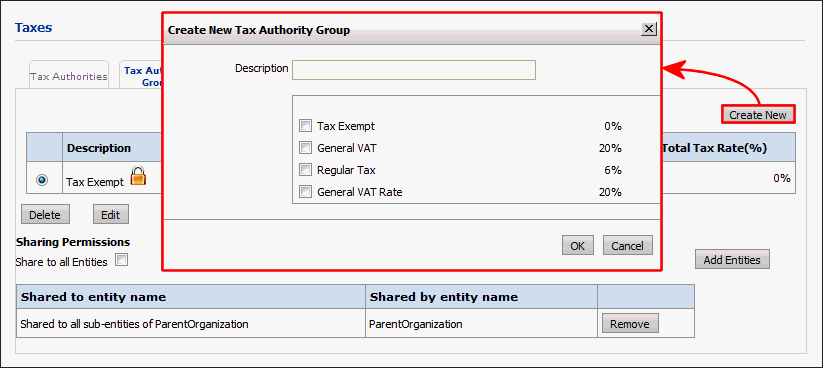 5 Click OK to create the tax authority group. It will appear in the tax authority group list