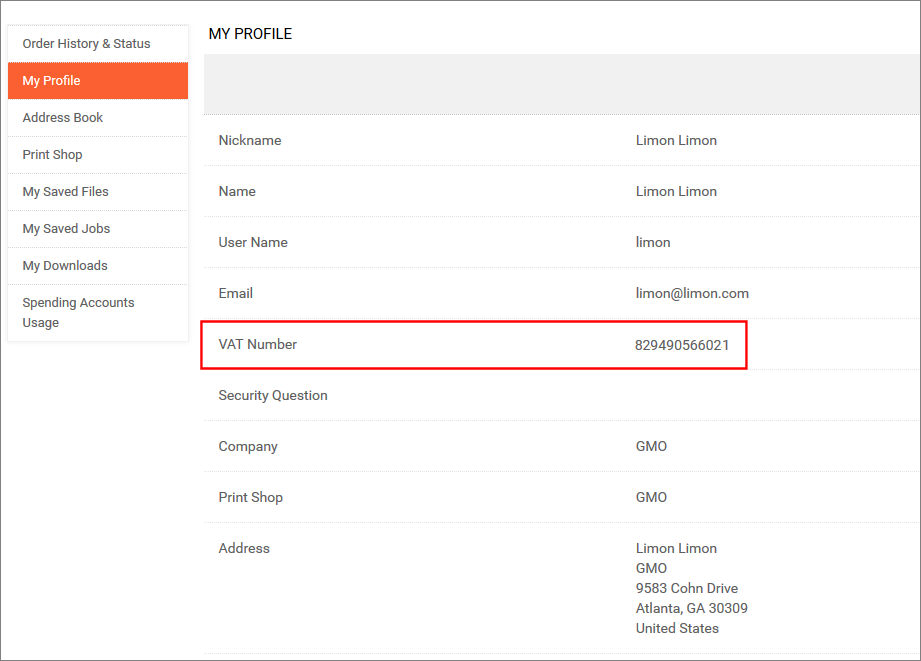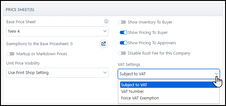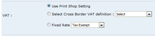● Use Print Shop Setting: Select this option to use the VAT settings in use at the Print Shop level.