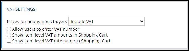 ● Include VAT: Select this option to include VAT in pricing shown to buyers.