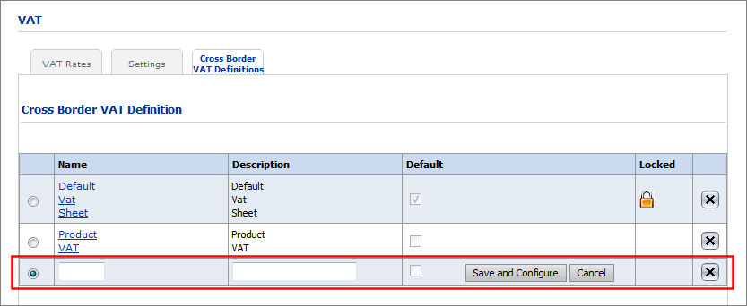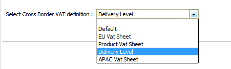 ● Select Cross Border VAT Definition: Associate a cross border VAT definition (i.e., VAT tax sheet) with the product.