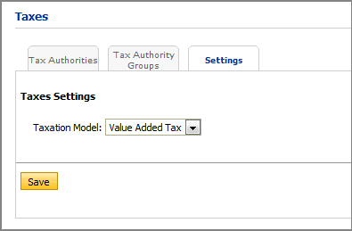 VAT (Value Added Taxation): VAT/GST is the most common tax model around the world whereby VAT/GST is applied to goods and services. Click here for information on setting up your site with the VAT tax model.