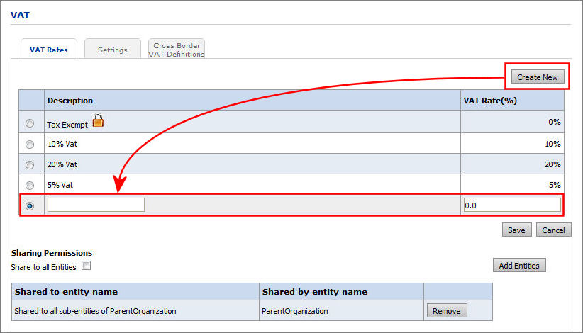 8 In the Sharing Permissions section, you can opt to share the cross border definition with all entities, or click Add Entities to select the entities to which you want to share it.