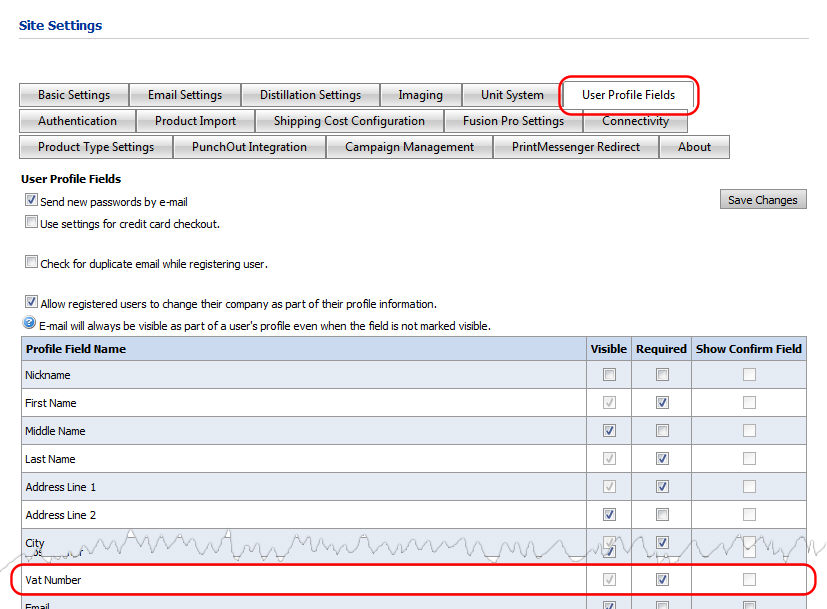 ● Check the Required checkbox if you want to require self-registering buyers to enter their VAT number as part of their profile.