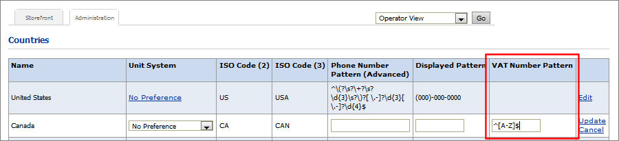 Please note that you will not be able to modify the VAT number pattern for European Union member states.