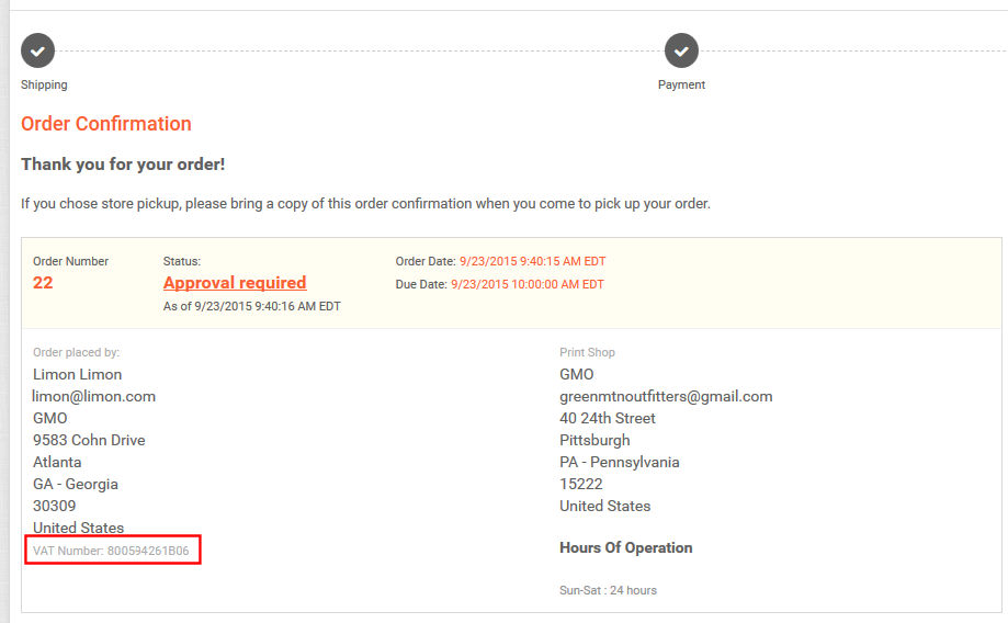 Note that for anonymous (pre-login) buyers, the Print Shop location is used to calculate the VAT rate.